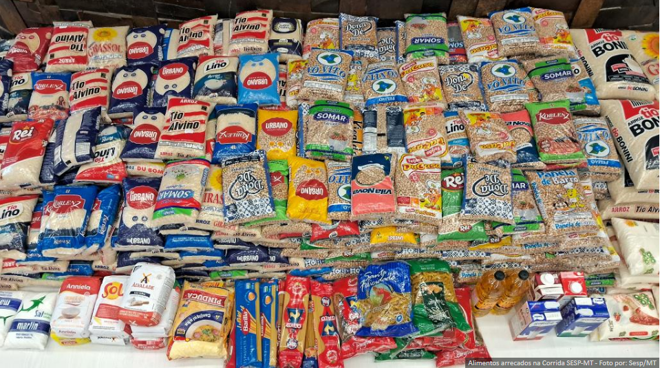 Os alimentos foram arrecadados durante a primeira edição da Corrida Sesp MT, realizada no último sábado (13), no Centro Político Administrativo e que reuniu cerca de mil servidores da Segurança e do Poder Executivo Estadual.