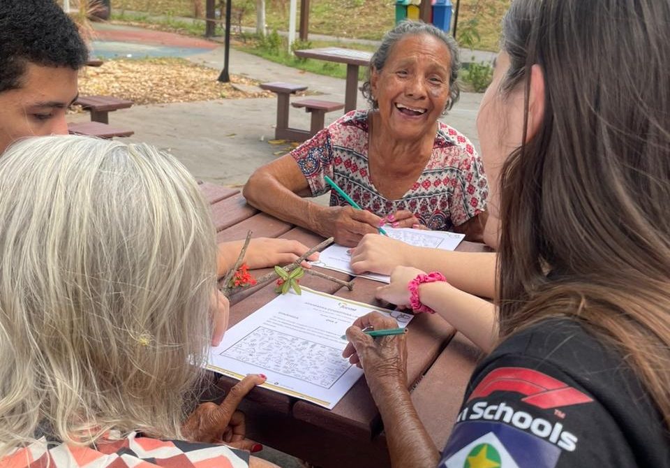 Desde outubro de 2025, os jovens de 16 a 18 anos realizam encontros semanais no abrigo, organizando oficinas cognitivas, digitais e socioemocionais. As atividades acontecem atualmente duas vezes por semana, com duração de uma hora, e atendem um grupo fixo de cinco idosos, todos com mais de 70 anos. A escolha dos participantes é feita em conjunto com a equipe técnica da Fundação, que também oferece espaço, apoio institucional e acompanhamento profissional.