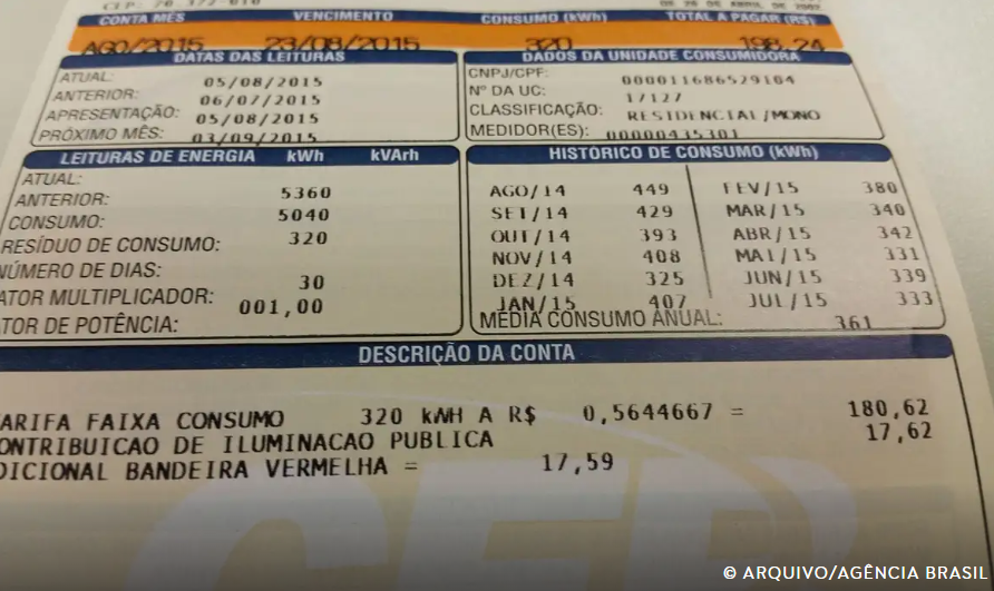Quando a conta de luz é calculada pela bandeira verde, não há nenhum acréscimo. Quando são aplicadas as bandeiras vermelha ou amarela, a conta sofre acréscimo a cada 100 quilowatts-hora (kWh) consumido.