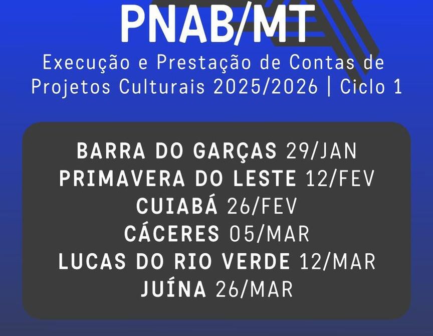 As oficinas presenciais acontecerão em seis cidades, começando por Barra do Garças (29.01). Na sequência ocorrerão em Primavera do Leste (12.02), Cuiabá (26.02), Cáceres (05.03), Lucas do Rio Verde (12.03) e Juína (26.03). Já as oficinas teles presenciais serão realizadas por demanda, com atendimentos práticos agendados via central tira dúvidas na internet, por meio do site https://mutirum.com/pnab-mt/