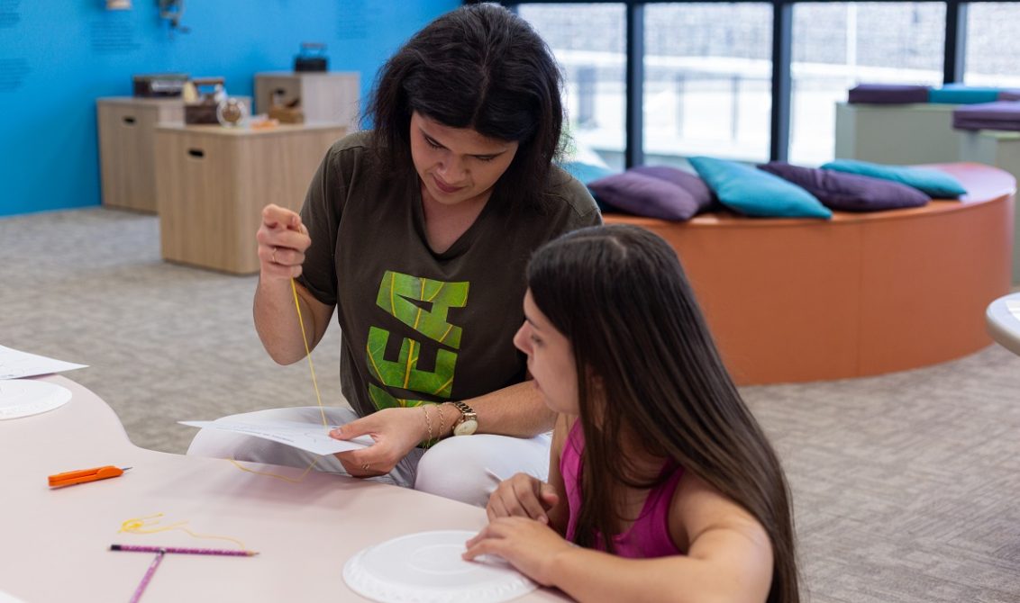 “Quando cheguei ao MEA, percebi que a parte da exposição dedicada à agricultura tradicional também precisava contar a história das nossas avós e do que elas faziam com as próprias mãos. Assim nasceu o Mãos e Fios, um espaço de práticas e trocas, onde o artesanato se torna uma ferramenta de desenvolvimento humano”, explica Claudete. “Tecer fios é uma atividade prazerosa, terapêutica e faz bem para a saúde”, completa a artesã.