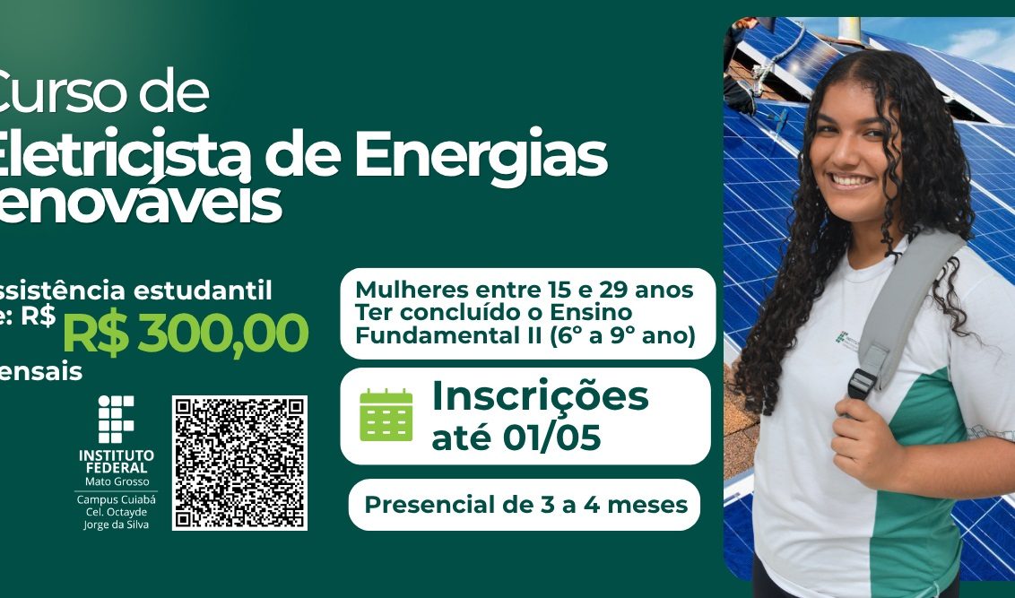 Mulheres entre 15 e 29 anos, que desejam aprender sobre a área de sistemas fotovoltaicos, podem participar do curso de Formação Inicial de Eletricista de Energias Renováveis – Instaladora de Sistemas Fotovoltaicos, ofertado pelo Instituto Federal de Educação, Ciência e Tecnologia de Mato Grosso (IFMT), de forma totalmente gratuita.