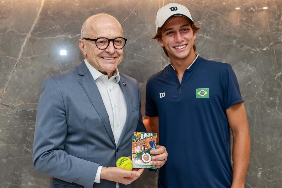 O governador Otaviano Pivetta recebeu, nesta quarta-feira (28.4), no Palácio Paiaguás, em Cuiabá, o tenista mato-grossense Leonardo Storck, de 17 anos. O atleta vai disputar uma série de torneios na Europa, entre eles o juvenil de Roland Garros, com apoio do Governo de Mato Grosso, por meio da Secretaria de Estado de Cultura, Esporte e Lazer (Secel), com custeio de passagens.