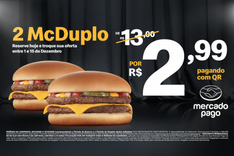Além de oferecer dois Big Mac por R$ 6,90, a marca, em parceria com o Mercado Pago, disponibiliza cupom que pode ser reservado para resgate em dezembro São Paulo, 24 de novembro de 2020 –...