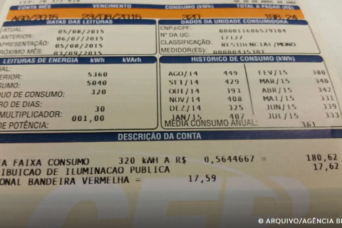 Quando a conta de luz é calculada pela bandeira verde, não há nenhum acréscimo. Quando são aplicadas as bandeiras vermelha ou amarela, a conta sofre acréscimo a cada 100 quilowatts-hora (kWh) consumido.
