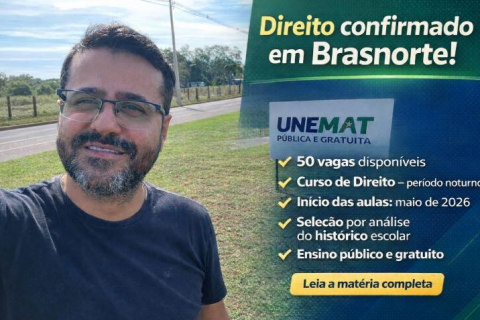 Vereador anuncia edital da nova turma de Direito da Unemat em Brasnorte